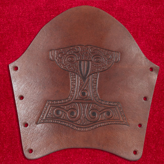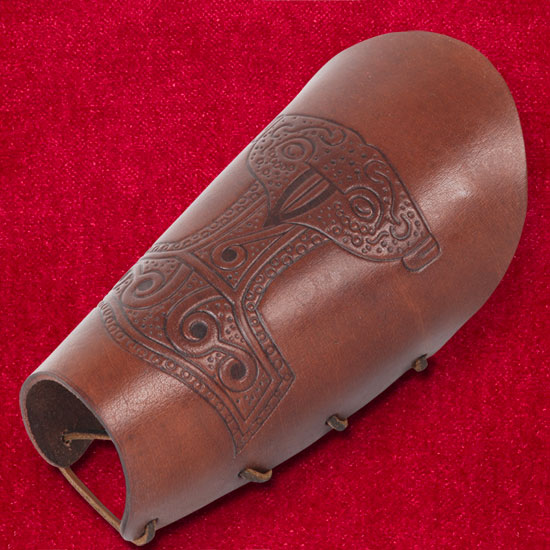 Armskydd i 3 mm. brunt läder med lädersnörning.