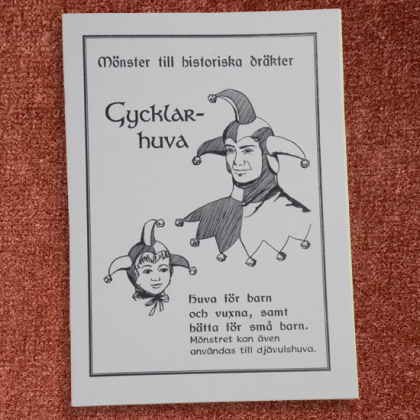 Huva för barn och vuxna samt hätta för småbarn. Mönstret kan även användas till djävulshuva, som var lika omtyckt som gycklarhuvan under medeltiden.