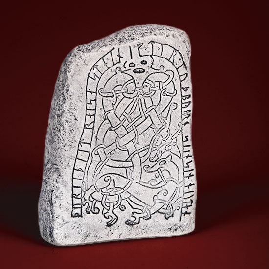 Minikopia av runstenen som står i Rinkaby i Närke.