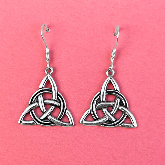 En triquetra med solring symboliserande evighet är motiv på dessa örhängen i silver.Längd 2 cm exklusive krok.